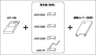 ●只要交換受光部。就能進(jìn)行3個(gè)波長(zhǎng)域(中心波長(zhǎng)254nm,365nm,405nm)和溫度的測(cè)定。