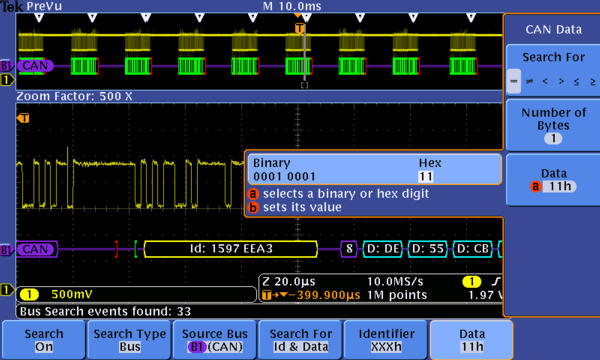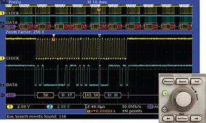 從觸發(fā)特定數(shù)據(jù)包內(nèi)容到自動(dòng)以多種數(shù)據(jù)格式解碼,MSO/DPO3000 系列為業(yè)內(nèi)最廣泛的串行總線提供了集成支持,包括I2C、SPI、CAN、LIN、RS-232/422/485/UART 和I2S/LJ/RJ/TDM。能夠同時(shí)解碼最多兩條串行總線和/或并行總線,意味著您可以迅速了解系統(tǒng)級(jí)問(wèn)題。