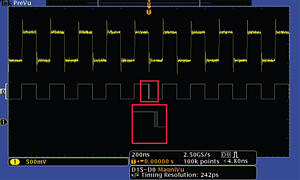 MagniVu高分辨率記錄提供了121.2 ps的定時(shí)分辨率,可以在數(shù)字波形上進(jìn)行關(guān)鍵定時(shí)測(cè)量。