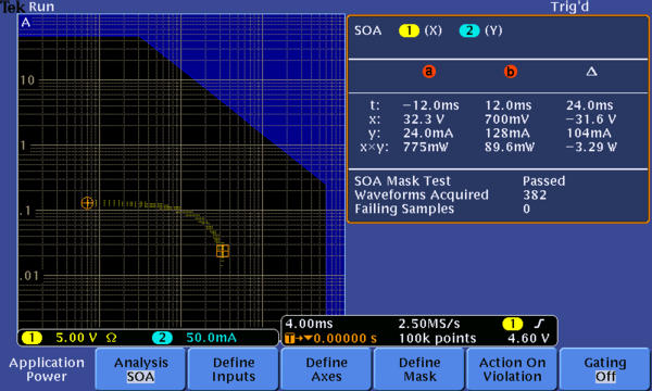 MSO/DPO3000系列提供了一套完善的集成分析工具,包括基于波形和基于屏幕的光標(biāo)、29種自動(dòng)測(cè)量、高級(jí)波形數(shù)學(xué)運(yùn)算(包括任意公式編輯)、FFT 分析和趨勢(shì)圖,以可視方式確定測(cè)量怎樣隨時(shí)間變化。另外它還為串行總線分析、電源設(shè)計(jì)及視頻設(shè)計(jì)和開(kāi)發(fā)提供了專(zhuān)用應(yīng)用支持。