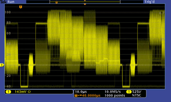 數(shù)字熒光技術(shù)可以在MSO/DPO3000 系列上實(shí)現(xiàn)>50,000 wfm/s的波形捕獲速率和實(shí)時(shí)輝度等級(jí)。