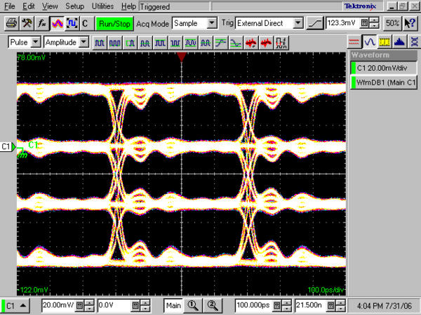 為存儲(chǔ)設(shè)備測(cè)試生成信號(hào)對(duì)存儲(chǔ)設(shè)備的容量要求不斷提高,要求為磁性及光學(xué)存儲(chǔ)設(shè)備開發(fā)新的速度更快的讀寫策略。人們正考慮在光盤存儲(chǔ)中采用多電平數(shù)據(jù)編碼,來(lái)有效提高存儲(chǔ)容量。 由于能夠準(zhǔn)確地復(fù)現(xiàn)讀寫信號(hào),AWG7000B 系列使得用戶能夠設(shè)計(jì)、開發(fā)和測(cè)試最新的存儲(chǔ)設(shè)備。擁有高達(dá)24GS/s的采樣率及能以100 ps的時(shí)鐘定時(shí)分辨率生成最多6 個(gè)信號(hào)(2 個(gè)模擬信號(hào)加4 個(gè)標(biāo)記信號(hào)),AWG7000B 系列代表著業(yè)內(nèi)的最新基準(zhǔn)。參見圖4。