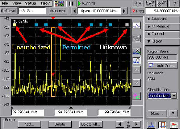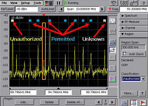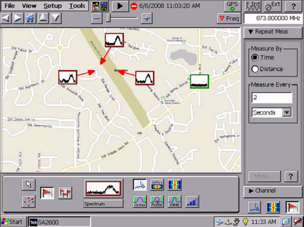 DPXTM 實時技術 - 信號比對搜索 - SCD 信號識別 - iMAP 實時地圖不斷演進的數(shù)字無線通信技術使得無線射頻環(huán)境日益復雜,頻譜 更加擁擠,給頻譜的監(jiān)測和管理帶來了前所未有的挑戰(zhàn),必須利 用有效的手段和測試工具才能完成這一任務。以往一直沿用的手 段,是結合使用臺式頻譜儀、手持頻譜儀、示波器以及PC 離線分 析軟件,實現(xiàn)對已知信號的管理,完成對未知信號的識別和地理位 置標識等工作。臺式頻譜儀經常因為受電源以及惡劣測試環(huán)境等因 素的制約而無法在外場應用;便攜式頻譜儀又往往受指標及自身功 能的限制而無法偵測到非法信號,離線PC分析軟件無法實時標注 現(xiàn)場所需的必要信息。泰克公司 H600/SA2600 RFHawkTM 獵鷹的 出現(xiàn),很好地解決了以上問題。 實時頻譜分析技術H600 以FFT 實時頻譜 分析技術為核心,實時 帶寬達20MHz,在便 攜式儀表中處于領先 地位。每屏80 個時間 點的時頻圖,可以實現(xiàn) 信號的回放,最小時間 間隔達160毫秒。利用 時頻圖自動存儲功能, 可以實現(xiàn)長時間對無 線環(huán)境的監(jiān)測。 H600采用了泰克專利的DPXTM實時頻譜技術,可以實時觀測同頻 干擾。DPXTM 實時頻譜技術,是一種數(shù)字熒光技術,它將一定時 間內的多個頻譜疊加,用顏色表示信不同號出現(xiàn)的頻次,能直觀地顯示出頻域中信號 變化情況。H600 每 秒顯示10,000 個頻 譜,因此在頻域中可 以以100% 的偵聽概 率捕獲顯時長不小于 125μs 的瞬變信號, 這比一般的掃頻頻譜 儀快200 倍。在觀測 同頻信號時,只要幾個同頻信號出現(xiàn)的頻次不同,就可以利用 DPXTM實時頻譜技術將 這些同頻信號區(qū)分出來,這在傳統(tǒng)的掃頻頻譜儀中是難以實現(xiàn)的。 信號比對搜索H600 的信號比對搜索功能,為快速偵測非法信號提供了高效手 段。H600可以實現(xiàn)兩種比對,第一種比對是信號類型的比對,通過被測信號與H 6 0 0 內置的類型數(shù)據(jù)庫的 比對,完成對被測信 號的標識,建立某地 區(qū)無線環(huán)境信號的數(shù) 據(jù)庫。第二種比對是 被測信號與已建立的 數(shù)據(jù)庫的比對,一旦 有數(shù)據(jù)庫外的信號出 現(xiàn),即表明該地區(qū)存 在新的信號,該信號可能是新的合法信號,也可能是非法信號,由此實現(xiàn)信號的快速 偵測。H600 內置了全部已知信號類型數(shù)據(jù)庫,用戶可在信號類 型數(shù)據(jù)庫中增加新類型。 SCD 信號識別H600 提供了SCD 信號識別功能,對復雜信號利用譜密度相關技 術比對被測信號與標準信號的特征譜,快速識別被測信號。SCD 信號識別速度大大高于調制識別方式,特別是對電平低至-90dBm 的信號,SCD 方法仍然可以識別信 號。H600內置的SCD 數(shù)據(jù)庫將不斷升級, 以滿足日益增多的信 號類型。此外,H600 提供iqt 文件輸出,用 戶也可以用自有信號 識別軟件對該信號進 行分析處理。 iMAP 實時地圖H600 的 iMAP 功能可以調用gsf、MapInfo、bmp 格式的電子地圖,利用“打點測試” 的方法,可以在現(xiàn)場執(zhí)行頻譜、時頻圖、信道功率、OBW 以及場強測試,將測試結果 和信號方向在電子地圖上標識出來。內置GPS,可實現(xiàn)“路測”功能。利用iMAP Converter 軟件可以抓取 MapPoint、Google Earth 圖像,快速制作 gsf 地圖。還可以 利用網絡地圖制作位圖格式地圖,并用 iMAP Converter 軟件對位圖中的標志性地標進 行GPS 坐標定位,制作 gsf 格式的地圖。與其他無線測試儀表不同的是,泰克iMAP 功能內置在H600 中,徹底擺脫了對PC 的依賴。