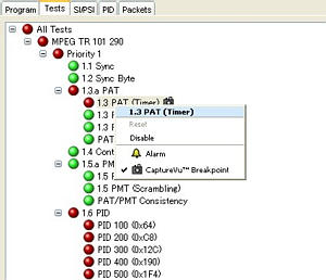 節(jié)目顯示MTS4SA提供了一種節(jié)目顯示方式,用戶(hù) 可以快速查看節(jié)目項(xiàng)中的傳送流內(nèi)容、 每個(gè)節(jié)目的使用比特率以及按照TASC、 DVB TR101 290 或ISDB 標(biāo)準(zhǔn)測(cè)試的結(jié) 果。并分別以紅、淡黃和綠色的LED 指 示來(lái)表示與每個(gè)節(jié)目或元素相關(guān)的錯(cuò)誤。 可以將在節(jié)目流分層的較低層次上檢測(cè) 到的錯(cuò)誤擴(kuò)展至最高層次。因此,用戶(hù)可 以在某一較高層次上監(jiān)視碼流中的所有 節(jié)目,然后在必要時(shí)迅速進(jìn)入較低層次 以查尋故障。 測(cè)試顯示在測(cè)試顯示(tests view)中,您可以將錯(cuò)誤 定位到已施加到傳送流的某一特定的測(cè) 試項(xiàng)中,您可以按照您選擇的測(cè)試來(lái)自 動(dòng)過(guò)濾錯(cuò)誤日志記錄,當(dāng)然,您也可以按 照PID 來(lái)過(guò)濾。除了在TR 101 290 標(biāo)準(zhǔn) 中所規(guī)定的第一、第二、第三優(yōu)先級(jí)測(cè)試 之外,您還可以測(cè)試PCR抖動(dòng)和節(jié)目/PID 比特率。所提供的可變性測(cè)試能使您測(cè) 試到特定PID中比特率的變化情況。除了 按照TR 101 290 標(biāo)準(zhǔn)進(jìn)行測(cè)試外,您還 可以對(duì)ATSC、ISDB-T 和ISDB-S 碼流進(jìn) 行許多特定的測(cè)試。 SI/PSI 和PSIP(表)顯示在SI/PSI 和PSIP 表顯示中,您可以觀(guān)察 到被分析碼流中所包含的業(yè)務(wù)信息表, 它應(yīng)當(dāng)服從于所選擇的數(shù)字視頻標(biāo)準(zhǔn)。 這包括ATSC PSIP、DVB和ISDB 業(yè)務(wù)信 息和MPEG 節(jié)目特定信息。 在SI/PSI 和PSIP 表的提要顯示中,以一 種有意義的方式給出了每一種表的主要 數(shù)值顯示,其中包括超鏈接顯示,通過(guò)這 個(gè)超鏈接,您可以迅速地訪(fǎng)問(wèn)其它表中 或其它顯示中的相關(guān)信息。 PID 顯示在PID 顯示中,給出了該傳送流中所有 PID的相關(guān)信息。如果您選擇了某一PID, 則其相關(guān)聯(lián)的提要顯示就能提供該傳送 流的PID定向圖示。這種信息可以呈柱狀 圖形,也可以呈餅狀圖形顯示。彈出菜單 給出了快速的容限選擇。 如果有一項(xiàng)或多項(xiàng)測(cè)試失效,那么在相 關(guān)的PID下會(huì)列出各項(xiàng)失效的測(cè)試。您可 以選擇特定的PID 以顯示所有相關(guān)測(cè)試 的提要。還可以選擇特定的測(cè)試以顯示 其事件日志記錄和參數(shù)。 數(shù)據(jù)包顯示在數(shù)據(jù)包顯示中,可以給出按照內(nèi)容分 組的傳送流中的所有數(shù)據(jù)包信息。這種 組合包括PID 數(shù)值、SFN 兆幀(Megaframe) 初始包(MIP,僅DVB)和信息 包(IIP,僅ISDB-T)。如果您選擇了特定 的PID或MIP,那么只顯示出具有特定PID 或MIP 的數(shù)據(jù)包。 字段(Section)顯示字段顯示使用的是可定制的腳本文件, 用戶(hù)可以指定并顯示專(zhuān)用信息。 MTS4SA可以提供表及其數(shù)據(jù)源顯示。這 種顯示(以十六進(jìn)制數(shù)值格式和ASCII字 符格式)給出了被選表、版本和字段的數(shù) 據(jù)字節(jié)。MTS4SA可以十分方便地分析表 和子表,并能直接跟蹤至包數(shù)據(jù)。 字段圖形(Section Graphing) 字段重復(fù)間隔-這種圖形給出了某一特 定PID 的表中兩個(gè)字段之間的間隔顯示。 子表相交間隙(Sub-table intersection gap)-這種圖形給出了某一特定子表中 字段之間的間隔顯示。 子表重復(fù)間隔-這種圖形給出了收到一 個(gè)完整子表與收到下一個(gè)完整子表之間 的時(shí)間顯示。 實(shí)時(shí)和延時(shí)電子節(jié)目指南(EPG)顯示在EPG顯示中,可以迅速地跨越許多EIT 表進(jìn)行查驗(yàn),并可以從當(dāng)?shù)貢r(shí)間、UTC時(shí) 間或傳送流自身時(shí)間中設(shè)置時(shí)間零值。 所顯示的EPG 事件的天數(shù)由廣播業(yè)主決 定,但不受分析儀局限。如果選擇了一個(gè) 傳送流EPG,則通過(guò)面板給出當(dāng)前在事 件面板(event panel)中顯示的業(yè)務(wù)名稱(chēng)。 所顯示的業(yè)務(wù)將取決于導(dǎo)航圖形中的被 選節(jié)點(diǎn)(node)。MTS4SA支持ATSC、DVB 和ISDB 標(biāo)準(zhǔn)中的電子節(jié)目指南。 PCR 分析利用MTS4SA系列,可以按照TR 101 290 標(biāo)準(zhǔn)進(jìn)行全面的PCR 測(cè)量。如果被選的 基本流PID 含有PCR 信息,就可以使用 PCR 分析顯示,所給出的顯示圖形有: PCR 準(zhǔn)確度、PCR 到達(dá)間隔、PCR 總抖 動(dòng)、PCR 頻率偏置以及PCR 漂移率。 在實(shí)時(shí)分析和延時(shí)分析中可以取得PCR 圖形。時(shí)間標(biāo)記數(shù)據(jù)確保PCR 圖形的捕 獲并提供碼流記錄顯示。MTS4SA的時(shí)間 標(biāo)記與由泰克公司其它設(shè)備( 包括 MTM400傳送流監(jiān)視器)所取得的記錄相 兼容。在上述重要的PCR 測(cè)量中,可選 的MGF過(guò)濾器提供了最大限度的靈活性 和兼容性。 MTS4SA 系列還可以在實(shí)時(shí)分析或延時(shí) 分析中提供PTS到達(dá)間隔圖形顯示,如圖 所示。 |