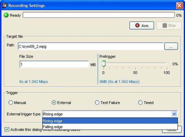 MTS4SA的IP記錄既可以立即開(kāi)始,也可 以在觸發(fā)時(shí)刻開(kāi)始記錄。可以在觸發(fā)點(diǎn) 之前、或觸發(fā)期間、或觸發(fā)點(diǎn)之后利用用 戶(hù)定義的預(yù)觸發(fā)緩存器以捕獲碼流。