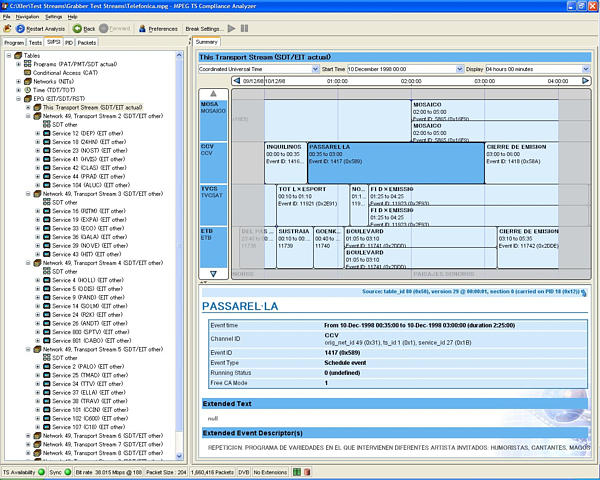 利用MTS4SA復(fù)用器,您可以增加或編輯 所有符合ATSC/DVB/ISDB 標(biāo)準(zhǔn)和MPEG 標(biāo)準(zhǔn)的PSIP/SI表、PSI表以及描述符。利 用MTS4SA的腳本,可以增加新表或用戶(hù) 表。允許用戶(hù)創(chuàng)建生成合法的條件,用于 解碼器或傳輸鏈路設(shè)備的增強(qiáng)測(cè)試,利 用這種方法可以檢驗(yàn)設(shè)備的可靠性。