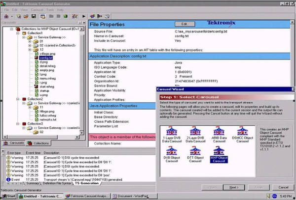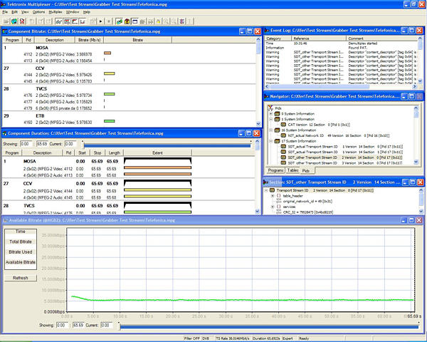 所有的MTS4SA 產(chǎn)品均按標(biāo)準(zhǔn)提供兩個(gè) 直接碼流處理軟件包。利用TS 剪切器可 以重新確定傳送流的容量大小,同時(shí)使 用TS 編輯器可直接編輯傳送流(利用十 六進(jìn)制顯示和包頭解釋指南)。用戶(hù)可以 重新映射PID、重新計(jì)算PCR數(shù)值,人為 地引入經(jīng)過(guò)校正的PCR 不準(zhǔn)確度,服從 以下法則:高斯、隨機(jī)、正弦波等。