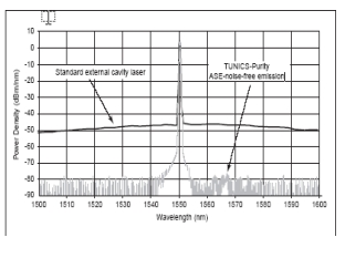 - 獨一無二的真正的無ASE噪聲可調(diào)諧激光源