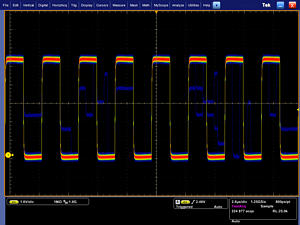 數(shù)字熒光技術(shù)可以在MSO/DPO5000 系列上實(shí)現(xiàn)>250,000 wfm/s 的波形捕獲速率和實(shí)時(shí)顏色等級(jí)。