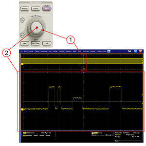 Wave Inspector 控制功能提供了前所未有的波形數(shù)據(jù)查看、導(dǎo)航和分析效率。旋轉(zhuǎn)外部卷動(dòng)控制裝置(1),查看長記錄。在幾秒鐘內(nèi)從記錄開頭到達(dá)記錄結(jié)尾。看到關(guān)心的東西、想看更多的細(xì)節(jié)?只需旋轉(zhuǎn)內(nèi)部縮放控制裝置(2)就可以了。