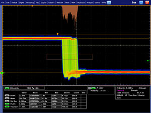 通過MSO/DPO5000 系列,您可以選擇無限余輝或可變余輝,確定前一個(gè)波形采集在屏幕上停留多長時(shí)間,進(jìn)而可以確定異常事件的發(fā)生頻次。