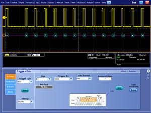捕獲-觸發(fā)經(jīng)過RS-232總線的特定發(fā)送數(shù)據(jù)包。一套完整的觸發(fā)功能(包括特定串行數(shù)據(jù)包內(nèi)容觸發(fā))保證您可以迅速捕獲關(guān)心的事件。