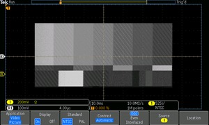 查看 NTSC 全彩條信號(hào)圖像。 視頻圖像模式包含了自動(dòng)對(duì)比度和亮度設(shè)置以及手動(dòng)控制。